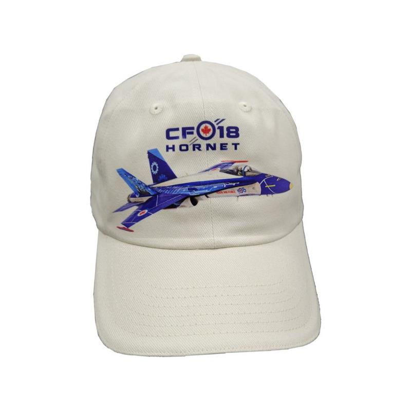 Celebrate the RCAF100 Anniversary in 2024 with an item from the exclusive line of Official RCAF Centennial Merchandise. Labusch Skywear has designed this printed hat featuring the 'CF-18 Hornet Demo Team 2024' motif featuring the versatile CF-18 Hornet in special colours for the 100th Anniversary!